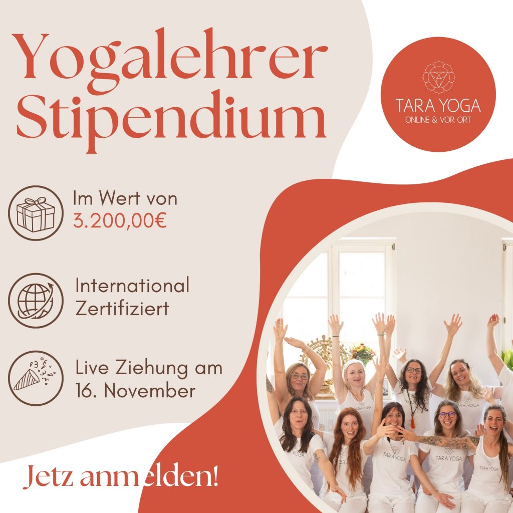 Bewirb dich hier für ein 100%iges Stipendium zur Yogalehrerausbildung 2025. Anmeldeschluss 16. November Verlosung am 16. November um 19 Uhr in der Community Ausbildungsstart am 24. November 2025